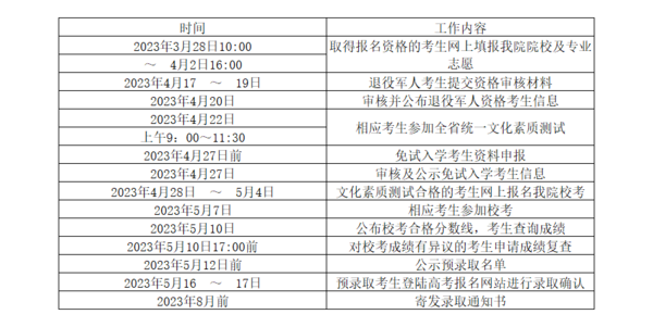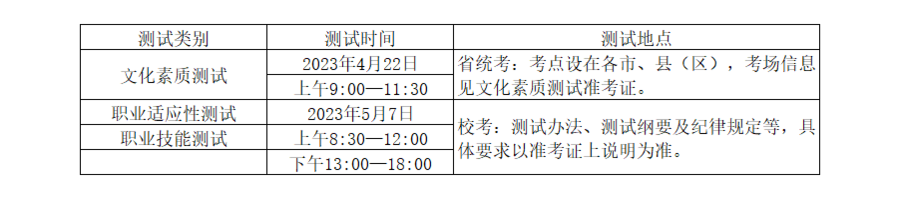 退役軍人考生免于文化素質測試,須參加我院組織的職業技能考試(中職畢業生)或職業適應性測試(除中職畢業生以外的其他考生)。