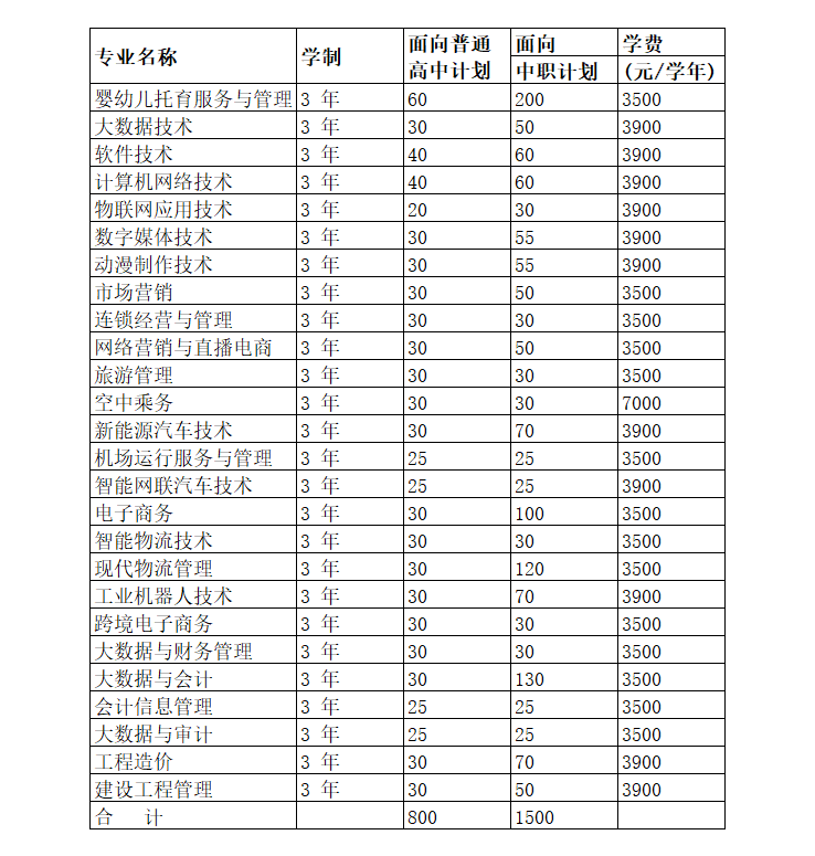 備注:普通高中生文理兼收,最終招生專業及計劃以省教育廳下達為準。